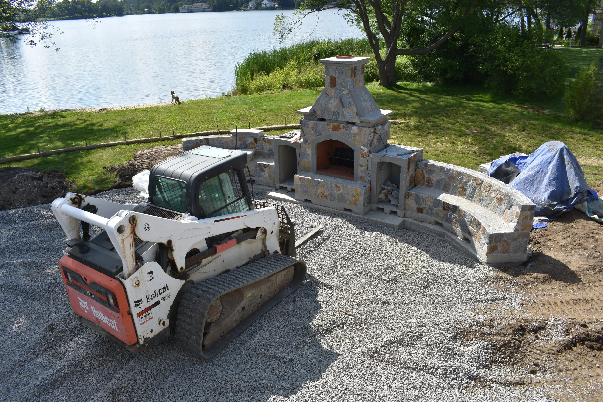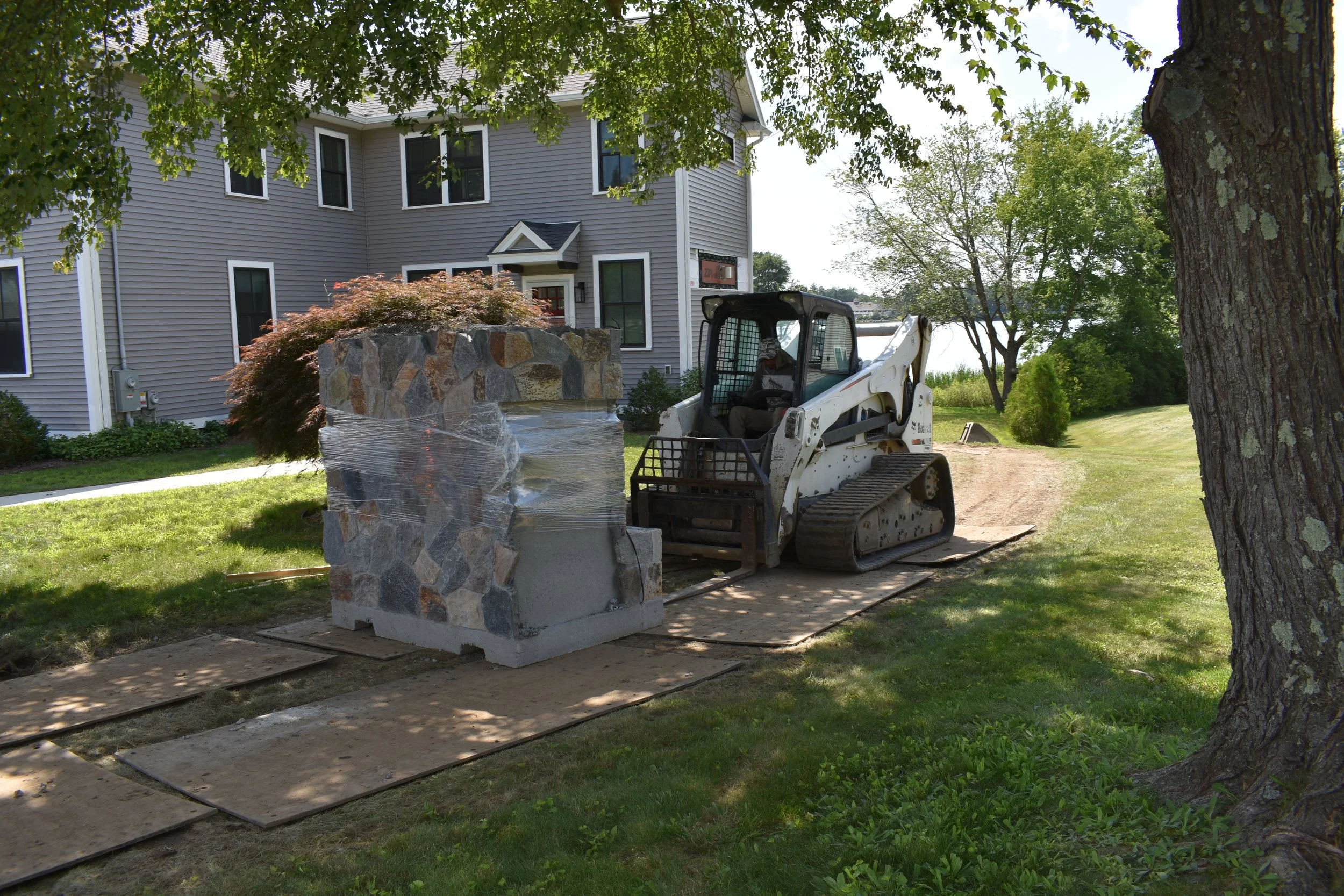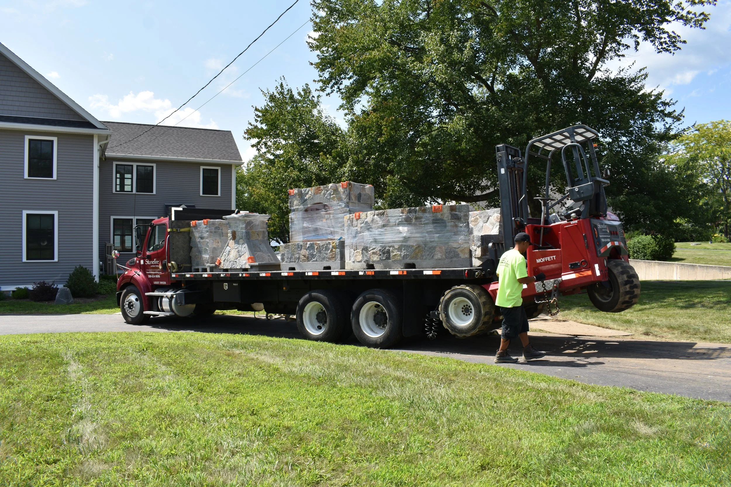 Instead of spending weeks in a backyard building these structures out of cinder blocks and doing the stone work on site, we will build them ahead of time in our shop which is a controlled environment and deliver them 95% complete to the site.